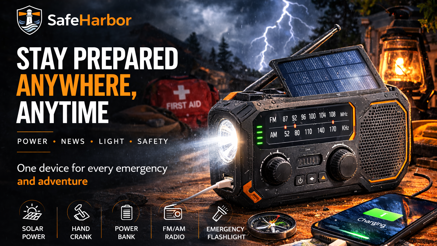 I bought the GuardianPro mainly for camping trips, but it’s reassuring to know it can also help during emergencies. The radio reception is clear, the flashlight is bright enough to light up a tent area, and the phone charging feature is extremely useful. It’s compact enough to keep in a backpack without taking up much space.